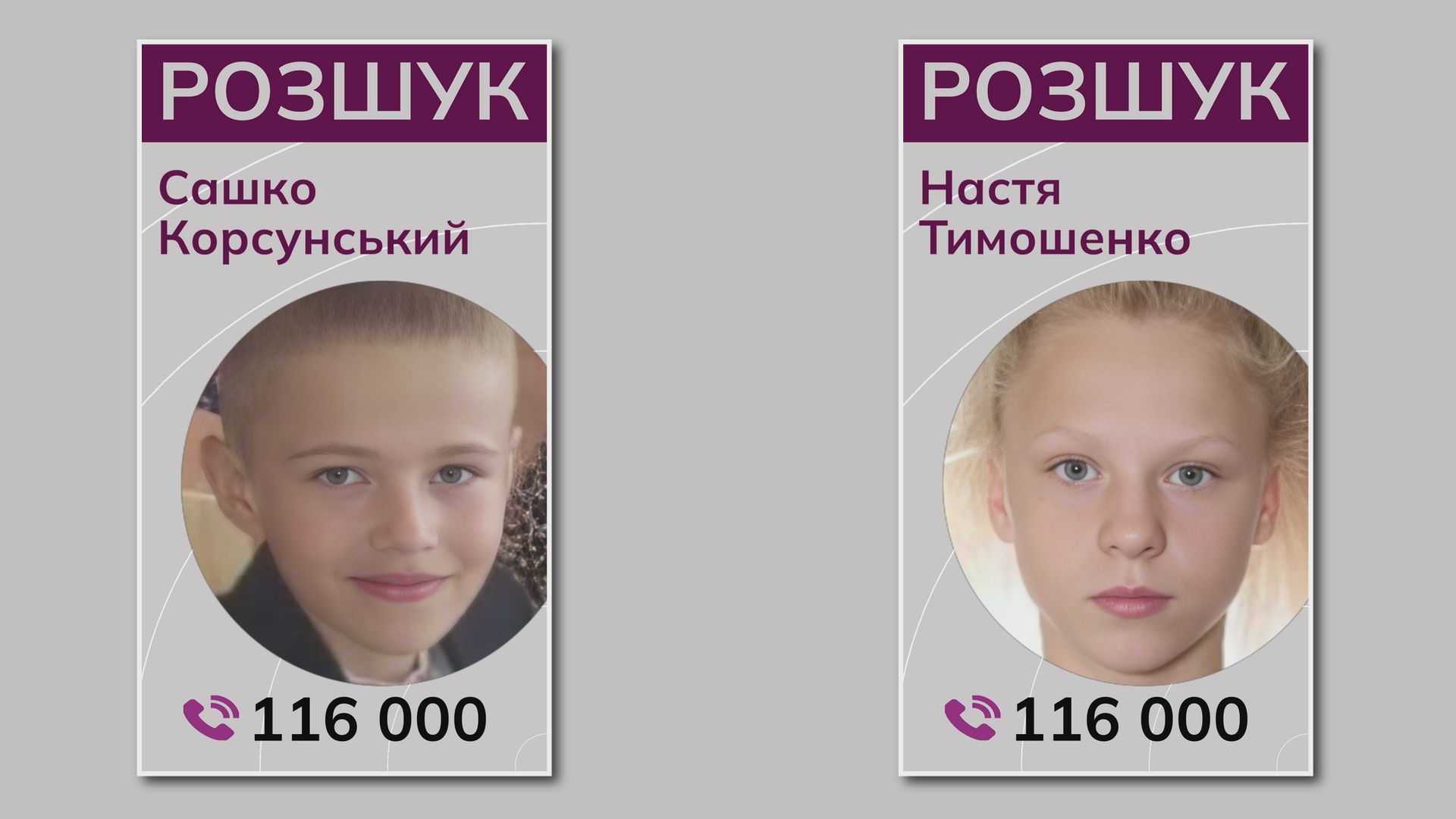 Ми розшукуємо 17-річну Настю Тимошенко зі Світлодарська на Донеччині, зв'язок з якою обірвався в червні 2022-го року, а також 13-річного Сашка Корсунського, який зник влітку 2023-го у Горлівці.