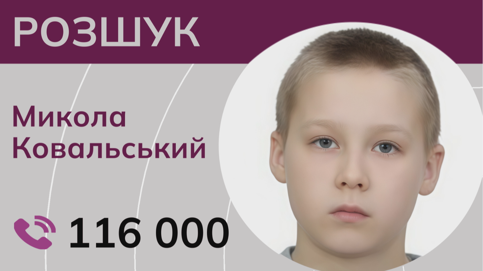 Якщо ви знаєте бодай щось про Миколу Ковальського, повідомте на гарячу лінію Служби розшуку дітей Магнолія за номером 116 000. Дзвінки безкоштовні.